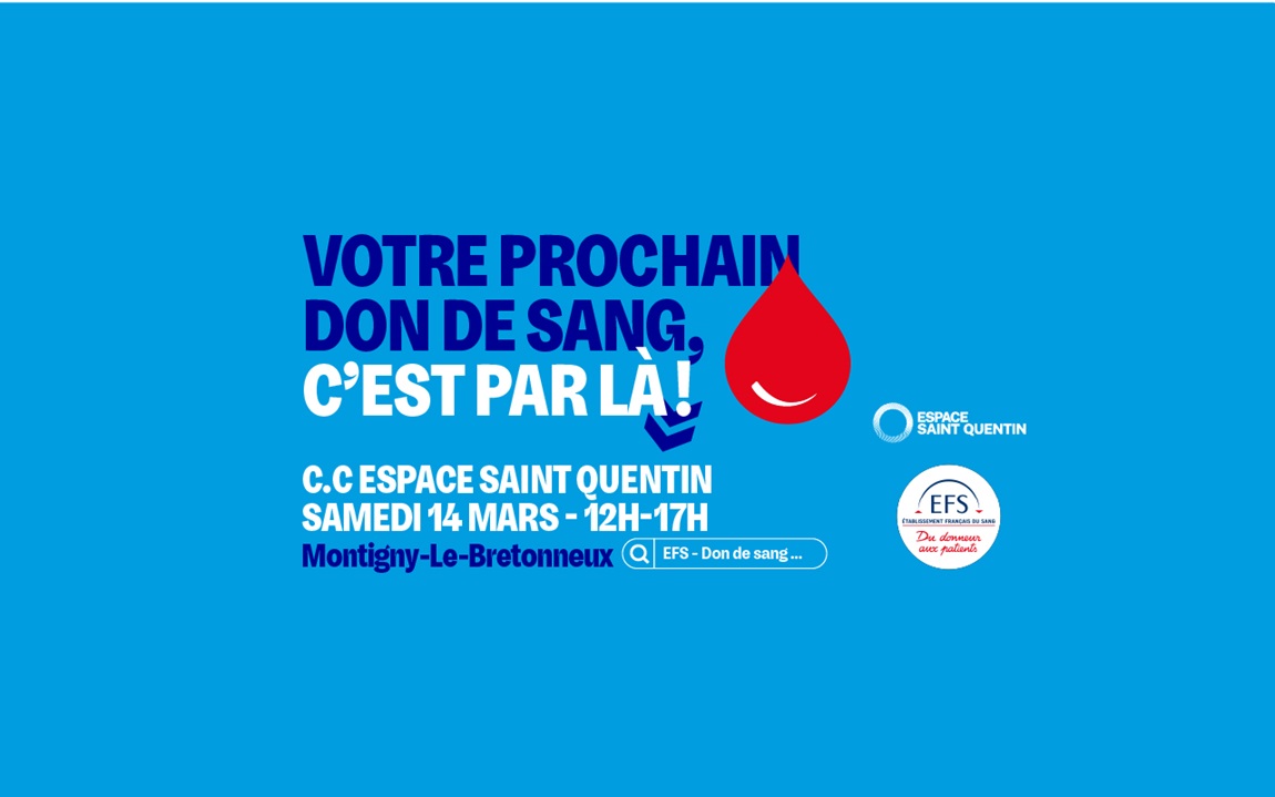 Retrouvez l'EFS (Établissement Français du Sang) samedi 14 mars, de 12h à 17h, entre les magasins Normal et Calzedonia pour réaliser un don du sang !