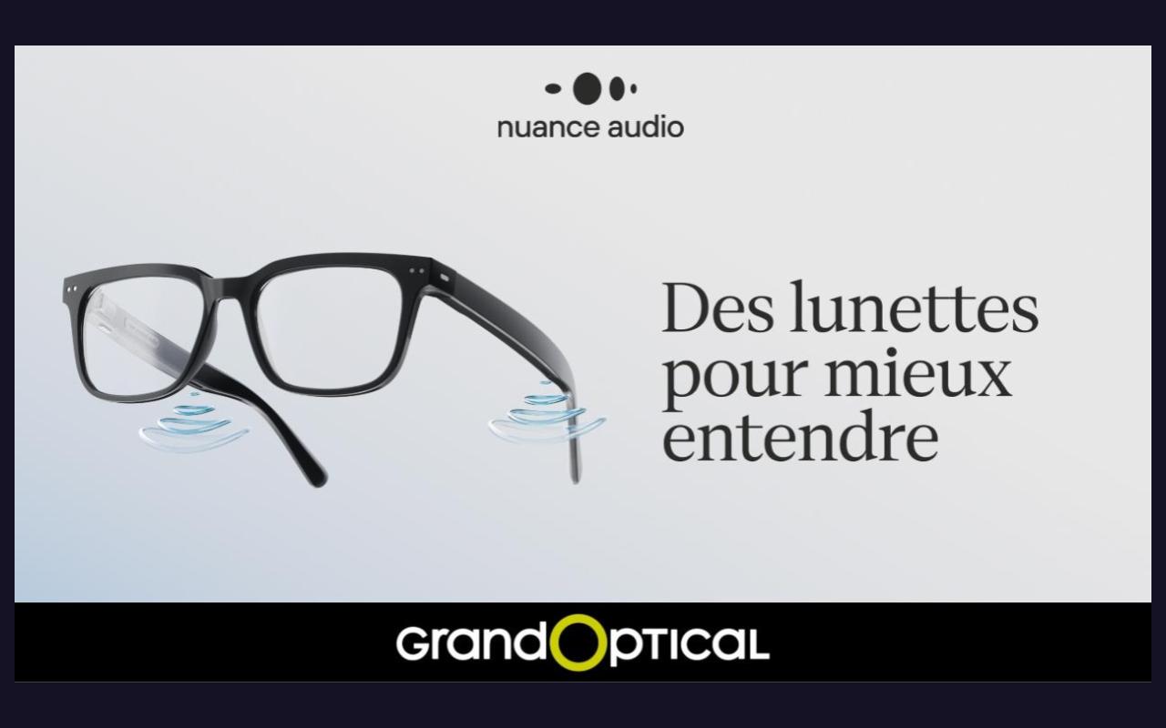 Chez GrandOptical, découvrez l'innovation Nuance AudioTM*, les lunettes dotées d'un assistant d'écoute invisible.