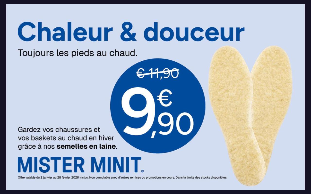*Offre valable du 2 janvier 2026 au 28 février 2026. Non cumulable avec d’autres remises ou promotions en cours.